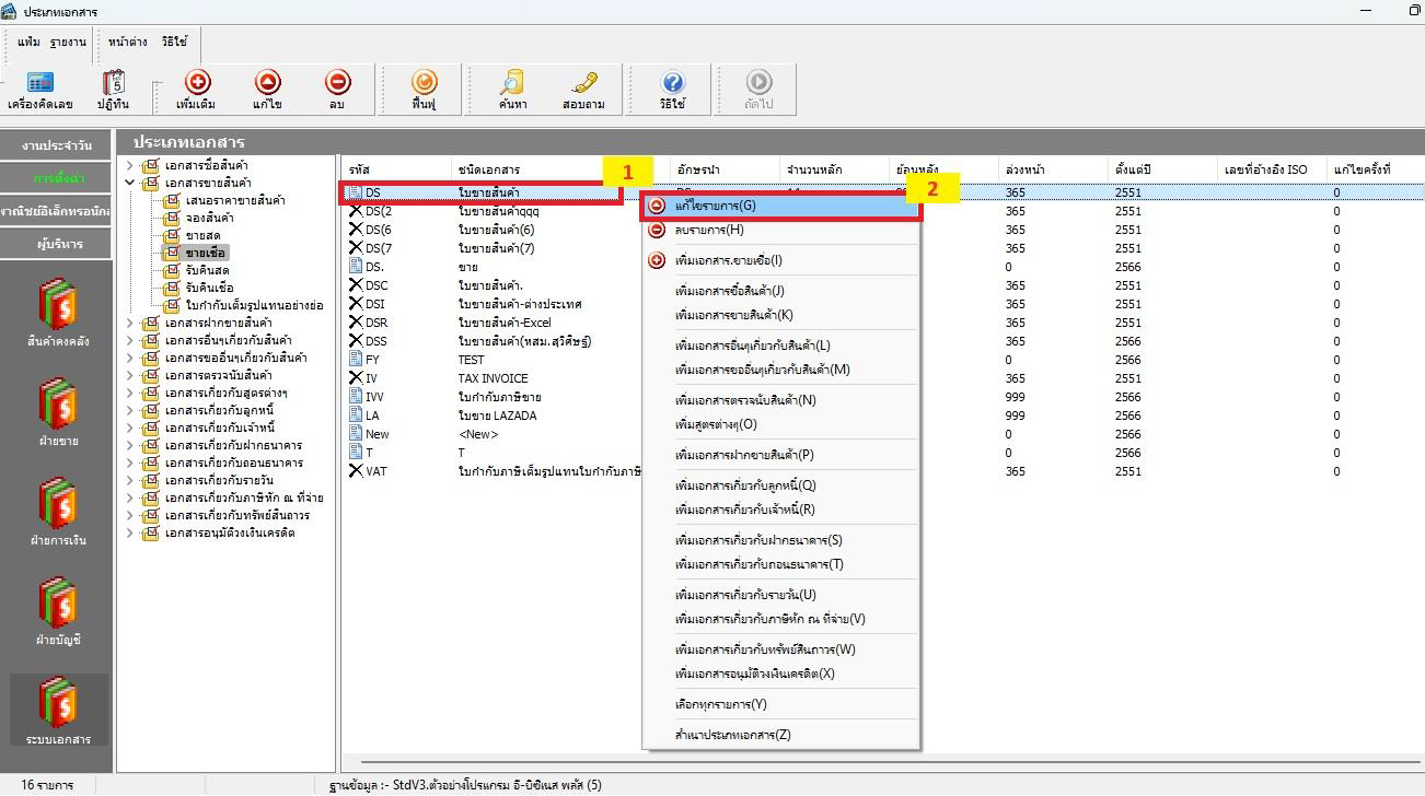 2. คลิกขวา “ใบขายสินค้า” เลือก “แก้ไขรายการ”