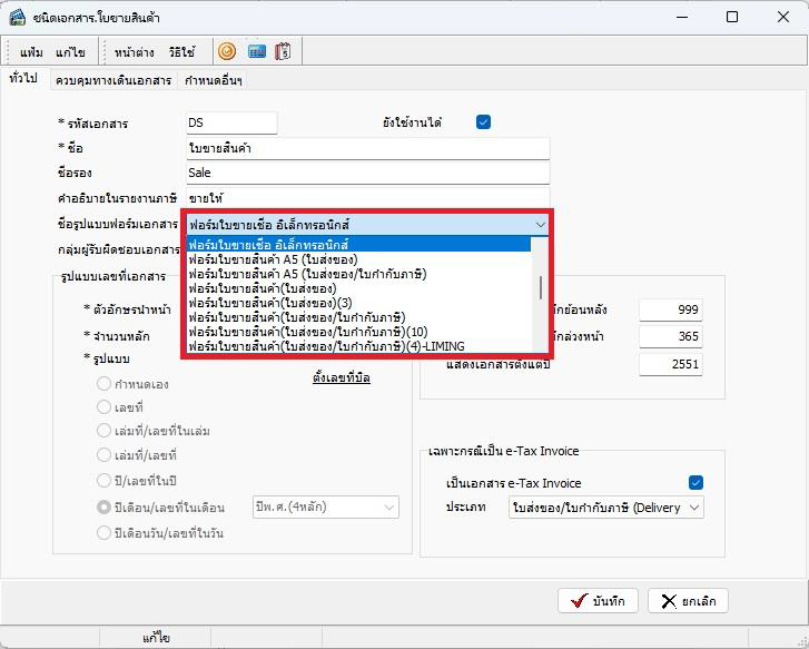 4. จากนั้นทำการกำหนดฟอร์มเอกสาร ตามที่ต้องการใช้งาน