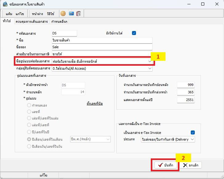 ฟอร์มที่นำมายกตัวอย่างสำหรับการตั้งค่าเอกสาร คือ ฟอร์มใบขายเชื่อ โดยสามารถทำตามขั้นตอนดังนี้