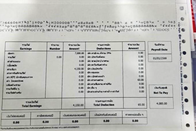 อธิบาย: สั่งพิมพ์รายงานแล้วแสดงตัวหนังสือหรืออักขระแปลก ดังภาพ