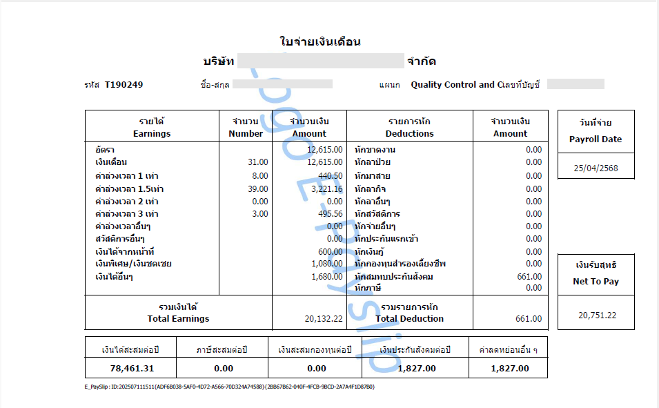 7. เมื่อตั้งค่าพื้นหลังใบจ่ายเงินเดือนเรียบร้อยแล้ว ทำการเลือกข้อมูลและส่ง E-Payslip อีกครั้ง