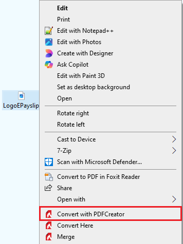 2. จากนั้นทำการคลิกขวาที่ไฟล์รูปภาพ > เลือกเมนู Convert with PDFCreator