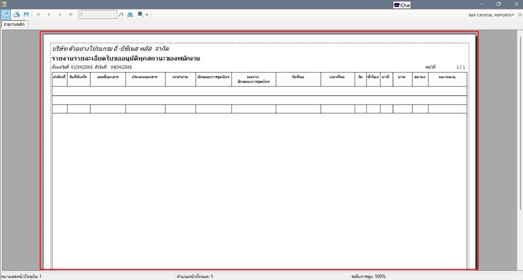อธิบาย: เรียกรายงานรายละเอียดใบขออนุมัติทุกสถานะของพนักงาน แล้วรายงานไม่แสดงข้อมูล