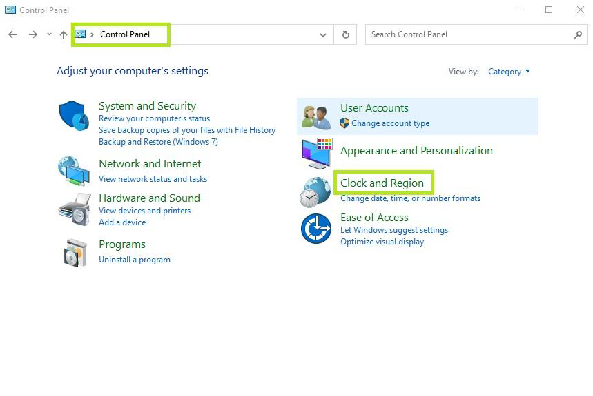 1. เข้า Control Panel เลือก “Clock and Region”