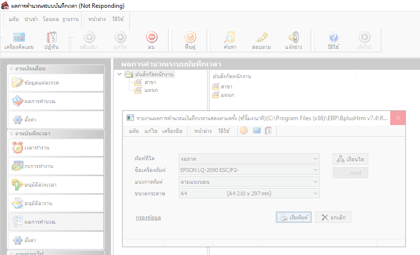 อธิบาย: อัปเกรดเวอร์ชันโปรแกรม Bplus HRM V7.4 เรียกรายงานแล้วหน้าจอค้าง Not Responding