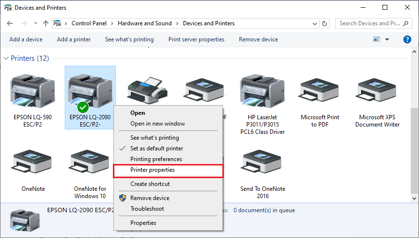 1. ทำการคลิกขวาที่เครื่องพิมพ์ แล้วเลือก “Printer properties”