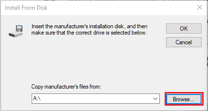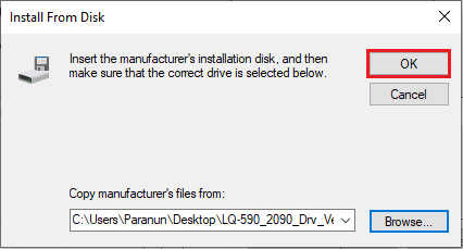 5. คลิกปุ่ม Browse… เพื่อค้นหาไฟล์ Driver Printer