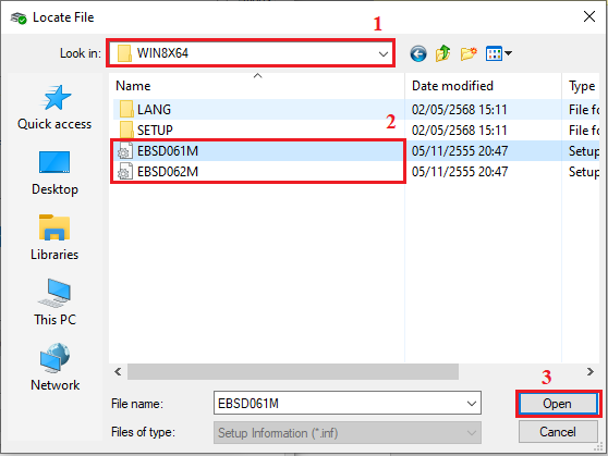 6.2 เลือกไฟล์นามสกุล .INF