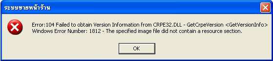 กรณีสั่งพิมพ์รายงาน และ โปรแกรมแสดงข้อความ Error:104 มีสาเหตุมาจากมีการติดตั้งโปแกรมที่มีไฟล์ส่วนประกอบของโปรแกรม Crystal Report คนละเวอร์ชั่นกับของไปรแกรมเงินเดือน ภายหลังจากที่ทำการติดตั้งโปรแกรมเงินเดือน เช่น โปรแกรมคำนวณภาษี หัก ณ ที่จ่าย หรือโปรแกรมโอนย้ายข้อมูล ภ.ง.ด.1 ของกรมสรรพากร จึงทำให้ไฟล์ส่วนประกอบของโปรแกรม Crystal Report ของโปรแกรมเงินเตือนใน C:/Windows/System32 โดนลบหรือเสียหาย ส่งผลให้เมื่อสั่งพิมพ์รายงานในโปรแกรมเงินเดือน จึงแสดงข้อความแจ้ง Error ดังรูป