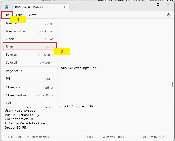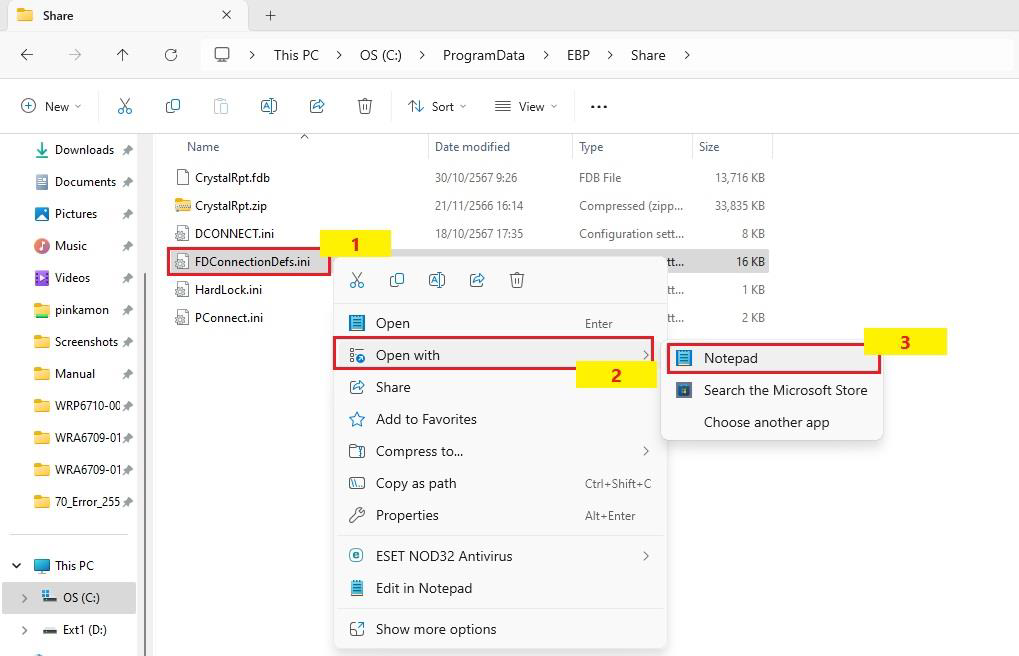 3. คลิกขวาที่ไฟล์ FDConnectionDefs.ini เลือก Open with เลือก Notepad เพื่อเปิดไฟล์