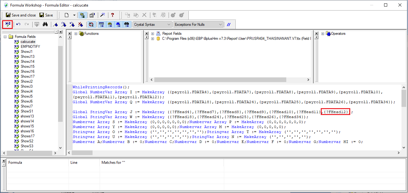 ไม่มี array ข้อมูลชื่อ {?FHead12} หรือมีจำนวน array ไม่เท่ากับของ Global StringVar Array I ดังภาพ