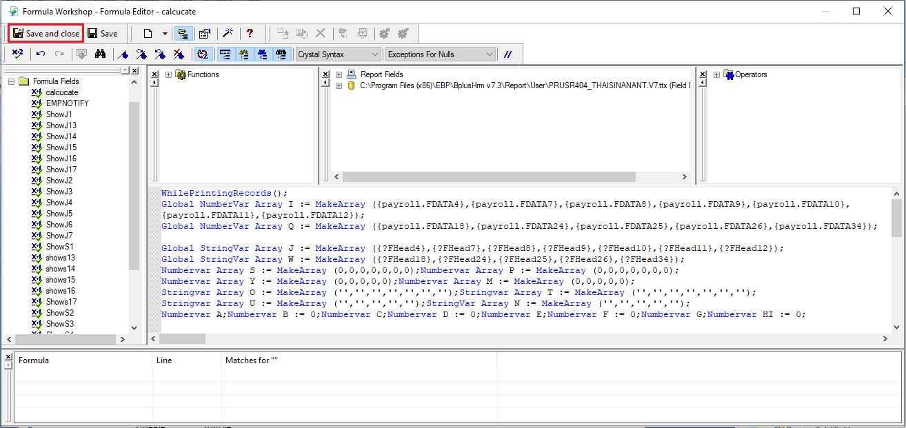 6. คลิกปุ่ม Save and close เพื่อบันทึกและปิดหน้าต่าง Formula Workshop – Formula Editor