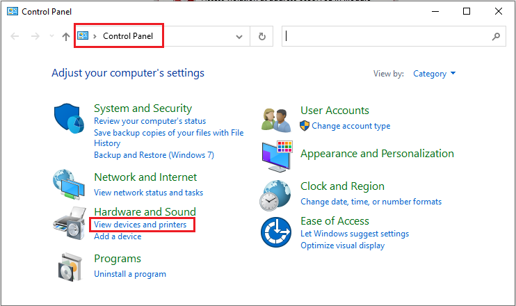 1. โดยไปที่ Control Panel กดเลือก “View devices and printers”