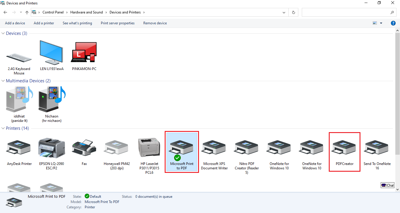 4. ทำการเปลี่ยนค่าเริ่มต้นเครื่องพิมพ์เป็นเครื่องอื่นๆ เช่น Microsoft Print to PDF หรือ PDFCreator จากนั้นเรียกรายงานอีกครั้ง