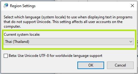 วิธีแก้ไข: ตรวจสอบการตั้งค่าภาษาพื้นฐานของเครื่องคอมพิวเตอร์ที่ใช้งาน ดังนี้