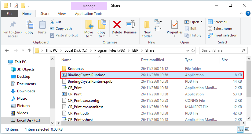 9. ทำการดับเบิ้ลคลิกที่ไฟล์ BindingCrystalRuntime.exe โดยเข้าไปที่ Path : C:/Program Files (x86)/EBP/Share