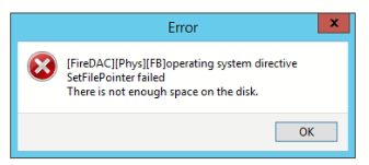 วิธีแก้ไข: ทำการย้ายข้อมูลหรือลบข้อมูลใน Drive เพื่อเพิ่มพื้นที่ว่างสาหรับเขียนไฟล์ Temp และ Commit ข้อมูล ในการใช้งานโปรแกรม