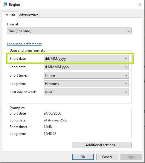 วิธีแก้ไข: ตรวจสอบการตั้งค่ารูปแบบการแสดงวันที่ของคอมพิวเตอร์ที่ใช้งาน ดังนี้