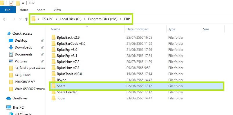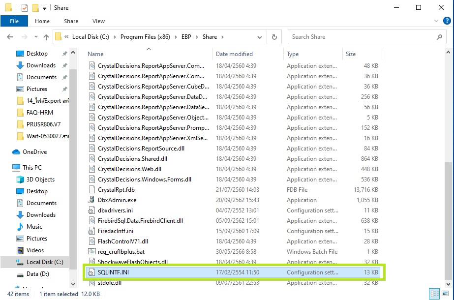 3. ตรวจสอบไฟล์ตั้งค่า SQLINTF.INI ที่ตำแหน่งเก็บโปรแกรม โดยตัวอย่างคือ C:/Program Files (x86)/EBP/Share