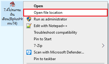 9.1 ทำการคลิกขวาที่โปรแกรม Shortcut หน้าจอ > เลือกเมนู Open file location