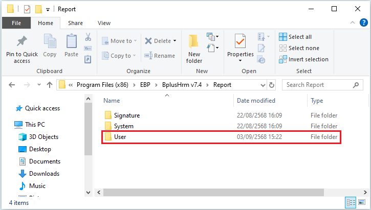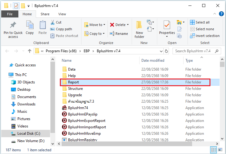 - ติดตั้งโปรแกรม 64 bit : C:/Program Files/EBP/BplusHrm v7.4/Report/User/