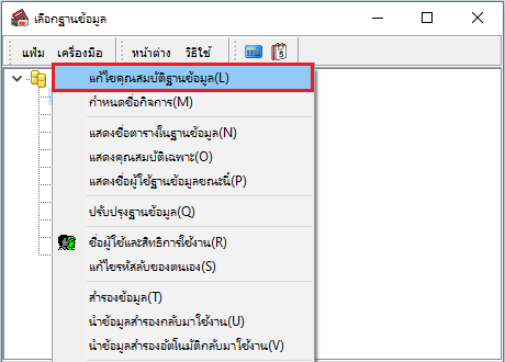 2) เลือกเมนู “แก้ไขคุณสมบัติฐานข้อมูล”