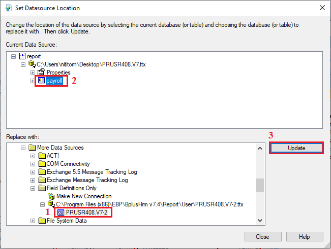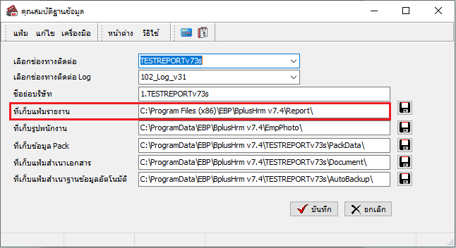 - ติดตั้งโปรแกรม 32 bit : C:/Program Files (x86)/EBP/BplusHrm v7.4/Report/User/