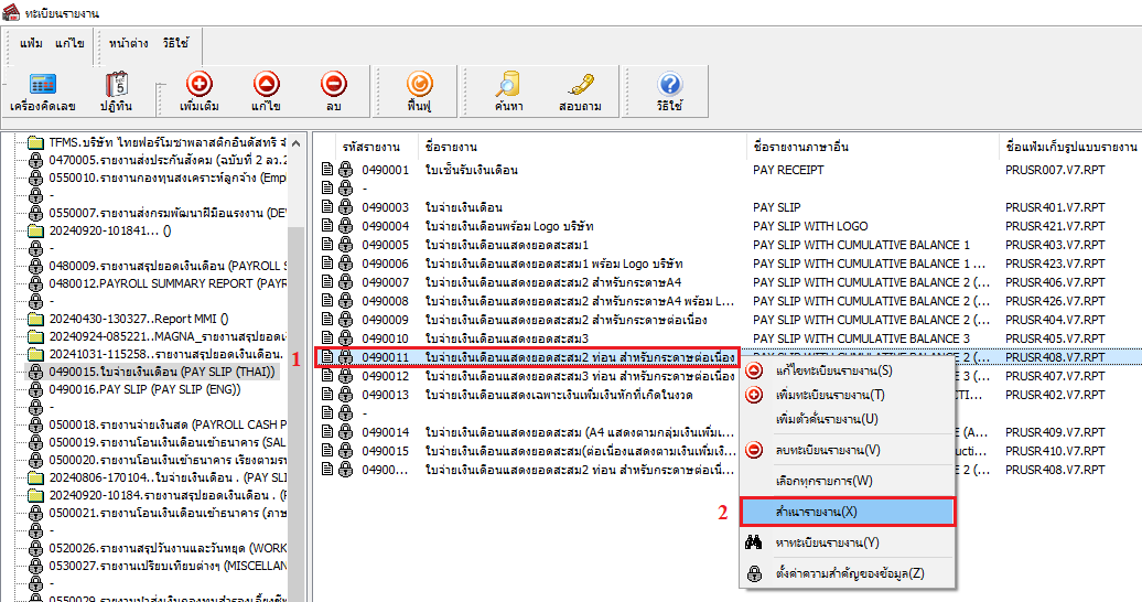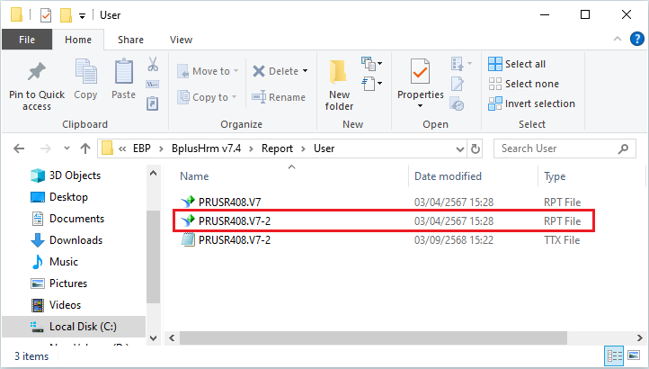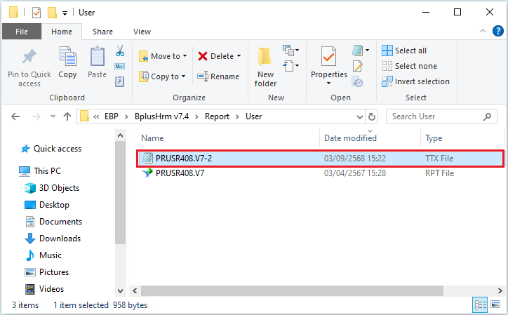 13.ทำการสำเนาไฟล์รายงาน .rpt และเปลี่ยนชื่อไฟล์ตามที่แก้ไขในหน้าแฟ้มทะเบียนรายงาน เช่น PRUSR408.V7 เป็น PRUSR408.V7-2 เป็นต้น