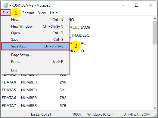 12.ทำการเลือก Encoding เป็น “ANSI” เพื่อป้องกันปัญหาฟิลด์แสดงข้อมูลไม่ถูกต้อง จากนั้นคลิกปุ่ม Save เพื่อบันทึก และกดปิดหน้าต่างไฟล์นามสกุล .ttx