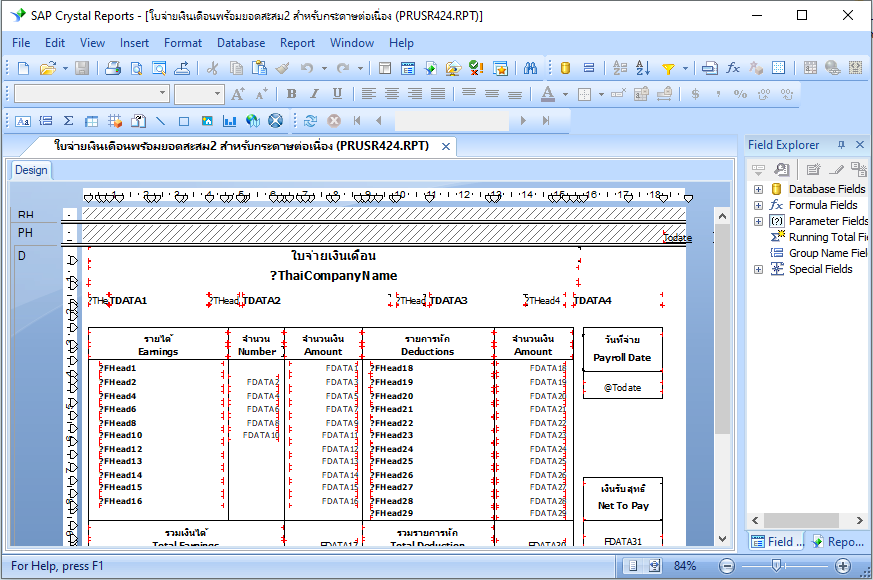 14.เปิดไฟล์รายงาน .rpt ด้วยโปรแกรม SAP Crystal Reports 2016/2020 โดยดับเบิ้ลคลิกไฟล์รายงาน .rpt ที่สำเนาไว้ เพื่อ convert หรือแก้ไขรายงาน โปรแกรมจะแสดงหน้าดังภาพ