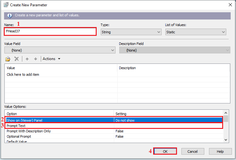 21.1 Name : ตั้งชื่อ Parameter ใส่ข้อความ FHead (เลข ID หรือเลขที่ประจำตัวที่สร้าง) เช่น FHead37