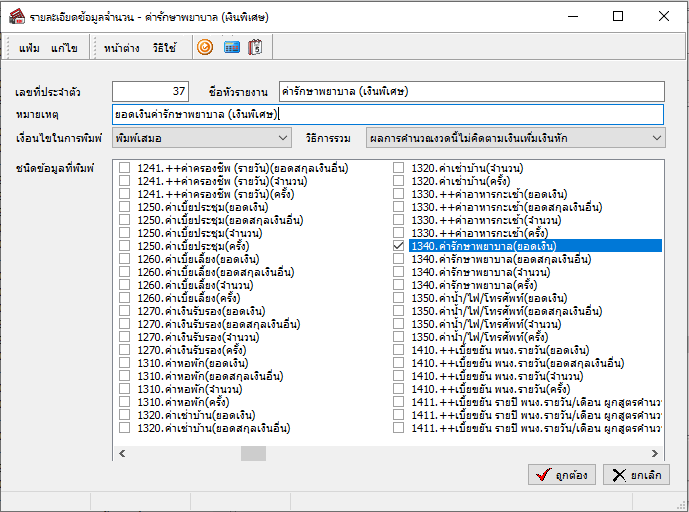 5.6 ชนิดข้อมูลที่จะพิมพ์ : ทำการติ๊กถูกเลือกข้อมูลตัวเลขที่ต้องการแสดง