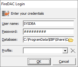 - หน้า FireDac Login ให้กดปุ่ม OK เพื่อทำการ Login