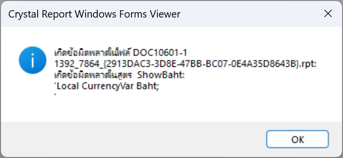 4. เมื่อติดตั้งไฟล์แก้ไขเสร็จเรียบร้อยแล้ว เปิดโปรแกรม และเรียกรายงานอีกครั้ง
