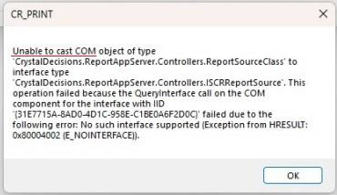 อธิบาย: เรียกรายงานแล้วแสดง Error ดังภาพ