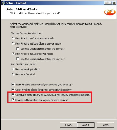 - ทำการติดตั้งโปรแกรม Firebird โดยในหน้า Setup – Firebird ให้ทำการติ๊กเพิ่มเติมในหัวข้อดังนี้