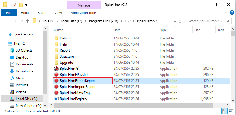 2. ดับเบิ้ลคลิกที่ไฟล์นามสกุล .exe ชื่อ “BplusHrmExportReport.exe” ดังภาพ