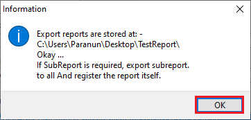 4. ระบบจะแสดงหน้าต่างแจ้งเตือน ส่งออกรายงานเรียบร้อยแล้ว คลิกปุ่ม “OK”